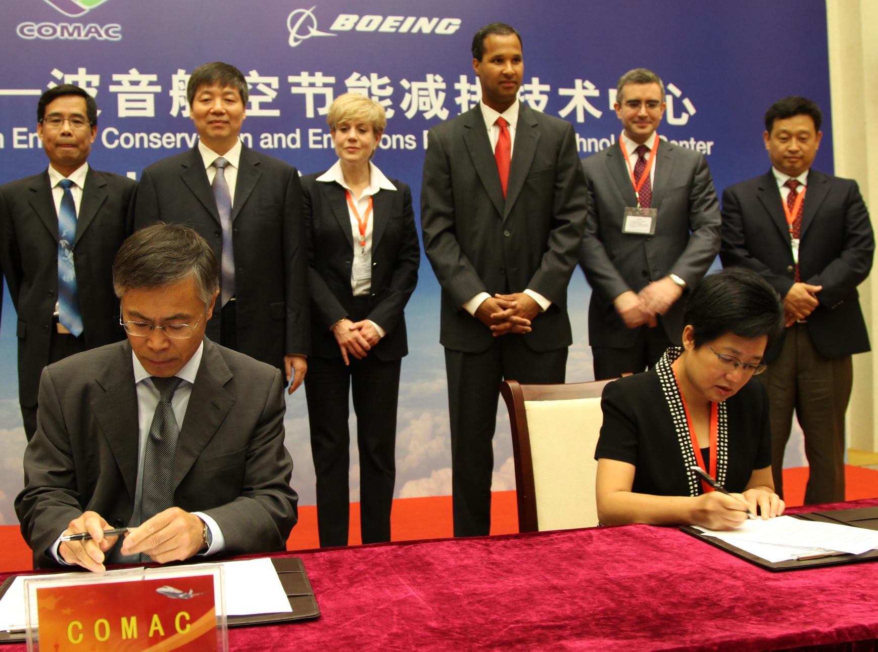 2012年8月16日,北京——中國商用飛機有限責任公司(COMAC)和波音今日啟動中國商飛—波音航空節能減排技術中心,攜手為民用航空業在中國以及全世界的發展提供支持。技術中心在中國商飛北京民用飛機技術研究中心正式揭牌。雙方宣布,中心的首個研究項目將探索使用廢棄食用油(在中國常被稱為“地溝油”)提煉可持續航空生物燃料的機會。