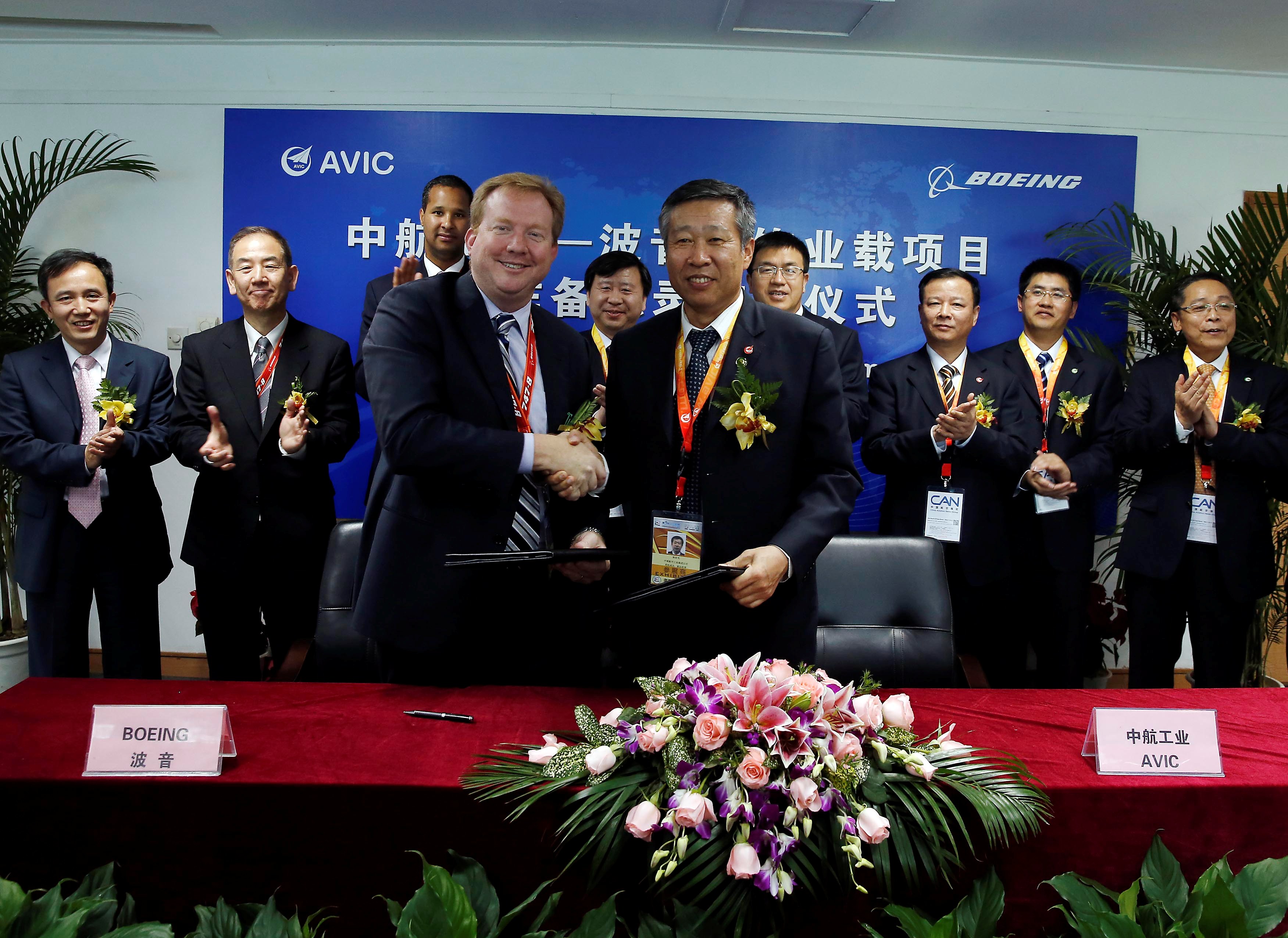 珠海,2012年11月13日 ,中國最大的國有航空制造企業——中國航空工業集團公司與波音公司今天宣布,雙方將攜手擴大中航工業的飛機內飾制造能力,生產包括商用飛機的客艙座椅、廚房和盥洗室、以及機載娛樂設備在內的產品。中航工業副總經理耿汝光與波音民機集團副總裁兼供應鏈管理與運營總經理Stan Deal在2012年珠海航展上簽署了“內飾業載項目合作備忘錄”。