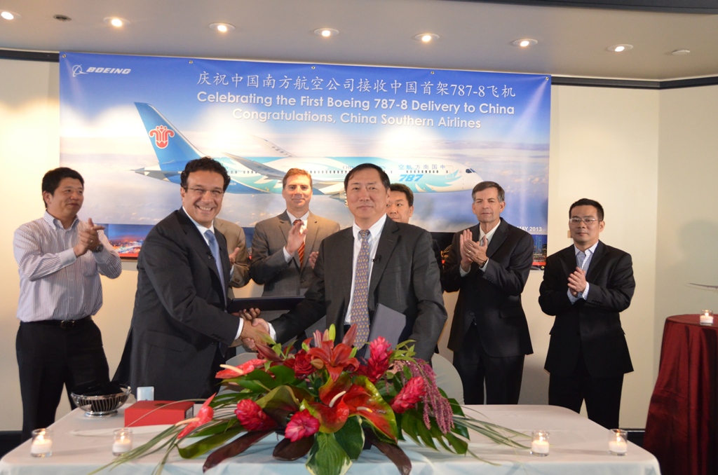 2013年5月31日,埃弗雷特——今日,波音公司和中國南方航空公司(以下簡稱“南航”)共同慶祝了南航首架787夢想飛機的交付。南航成為中國首家、全球第10家接收并運營這一改變市場面貌的飛機的航空公司。6月2日,噴繪著“夢想之翼”特殊涂裝的南航787飛機將飛抵廣州。