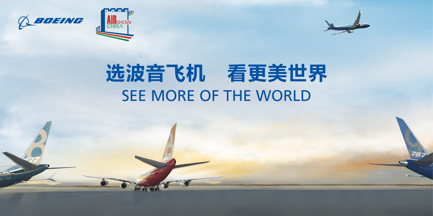 此外,在本屆航展期間,波音將與航空公司客戶聯合在微博發起#看更美世界#線上活動,鼓勵網友通過活動頁面將自拍照片上傳到787舷窗電子相框中,并通過微博賬號分享。航展現場的觀眾,也可以通過在波音展臺的787舷窗展示臺旁留影并上傳到微博賬號參加活動。參加者將有機會贏得航空公司提供的驚喜大獎。