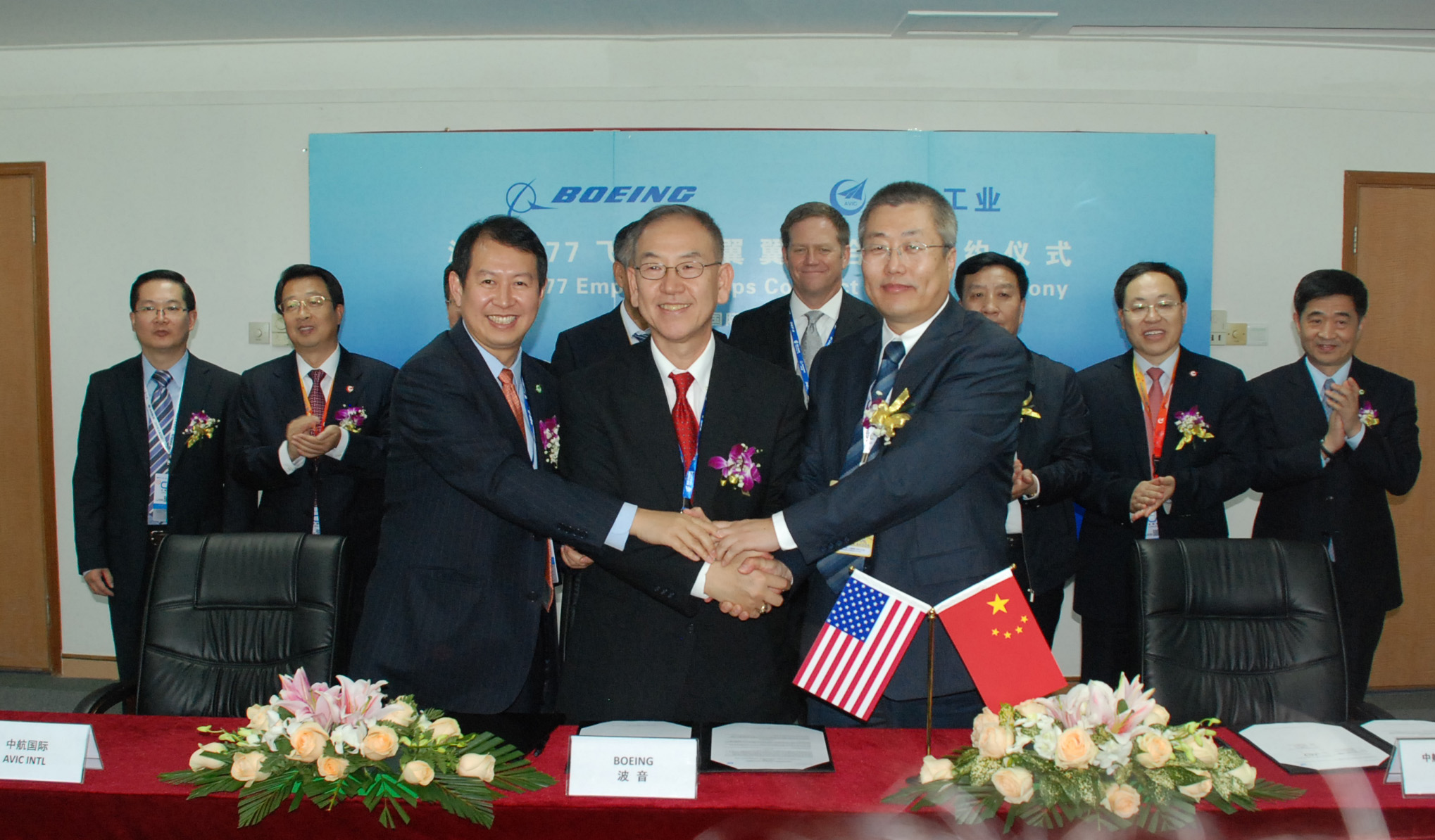 2014年11月11日,珠海——波音在第十屆珠海航展首日宣布,將從2017年開始與中國最大的國有航空制造企業中國航空工業集團公司(中航工業)合作生產777的復合材料尾翼翼尖。這一新協議以波音與中航工業在2013年簽訂的777垂尾和平尾前扭力盒復材壁板生產合同為基礎,由波音、中航工業沈飛民機公司和中國航空技術國際控股有限公司共同努力達成。