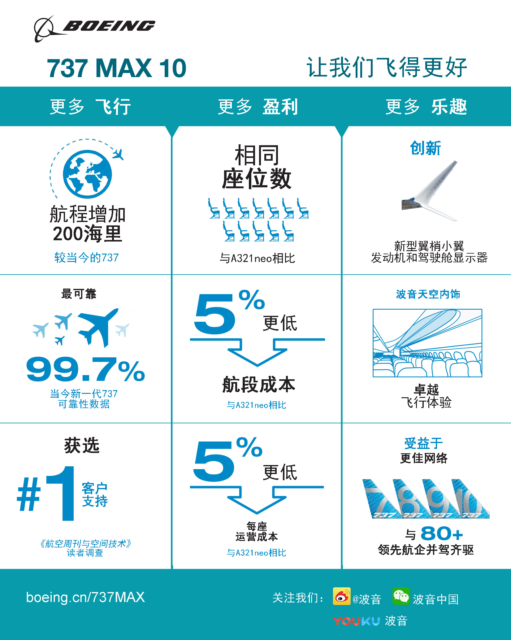 737 MAX是波音歷史上銷售最快的機型,迄今獲得了來自全球96家客戶的超過4400架訂單。更多信息,請見http://www.springherecn.cn/productsandservices/737max/