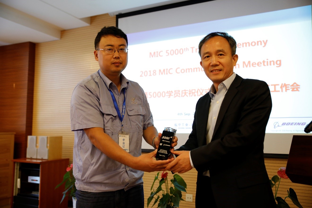 2018年9月4日,北京——波音和中國航空工業集團(以下簡稱航空工業)今日共同慶祝了雙方持續緊密合作的里程碑:航空工業-波音制造創新中心第5000名學員完成培訓。雙方高層領導和員工出席了這一慶祝活動。