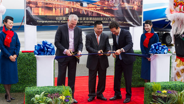 2016年1月28日, 西雅圖 – 波音今日向廈門航空交付了出廠的第8888架737飛機(jī)。這架新一代737-800飛機(jī),在機(jī)身上特別裝飾了四個(gè)“8”的紀(jì)念標(biāo)識(shí)。